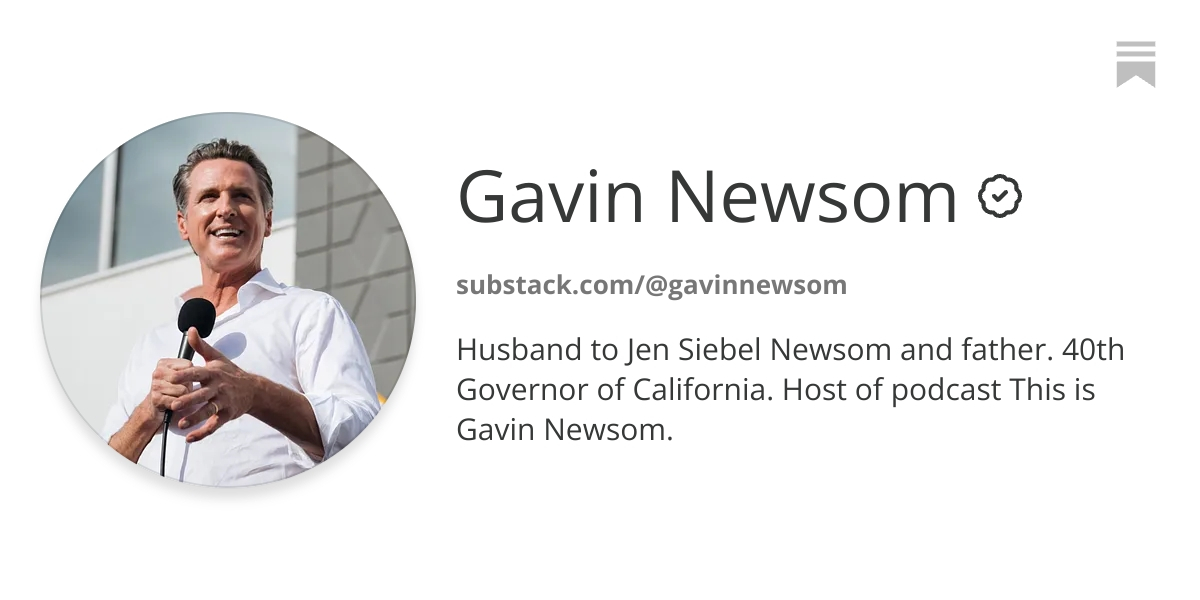 Husband to Jen Siebel Newsom and father. 40th Governor of California. Host of podcast This is Gavin Newsom.